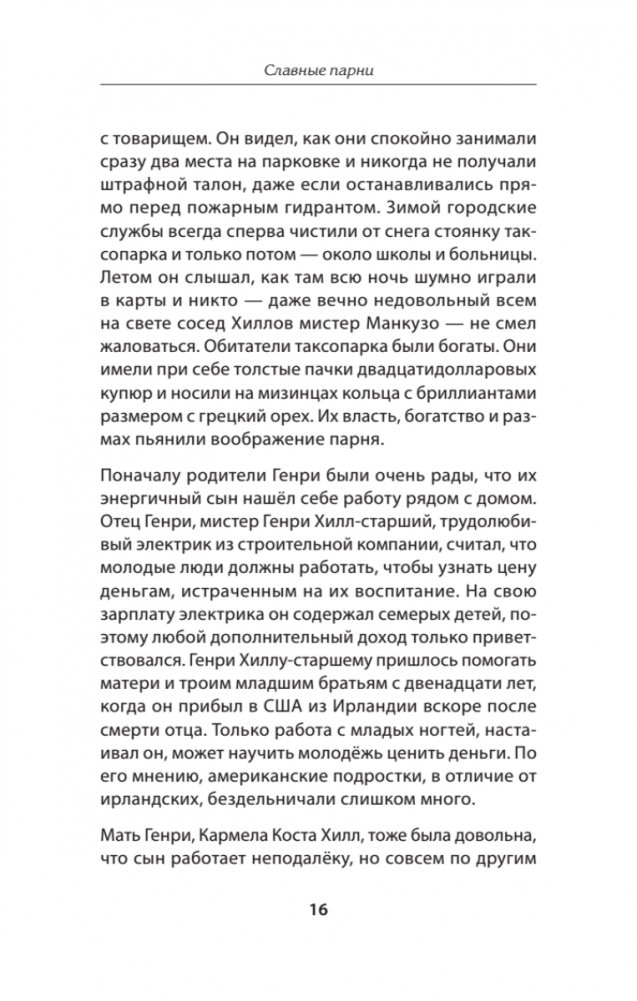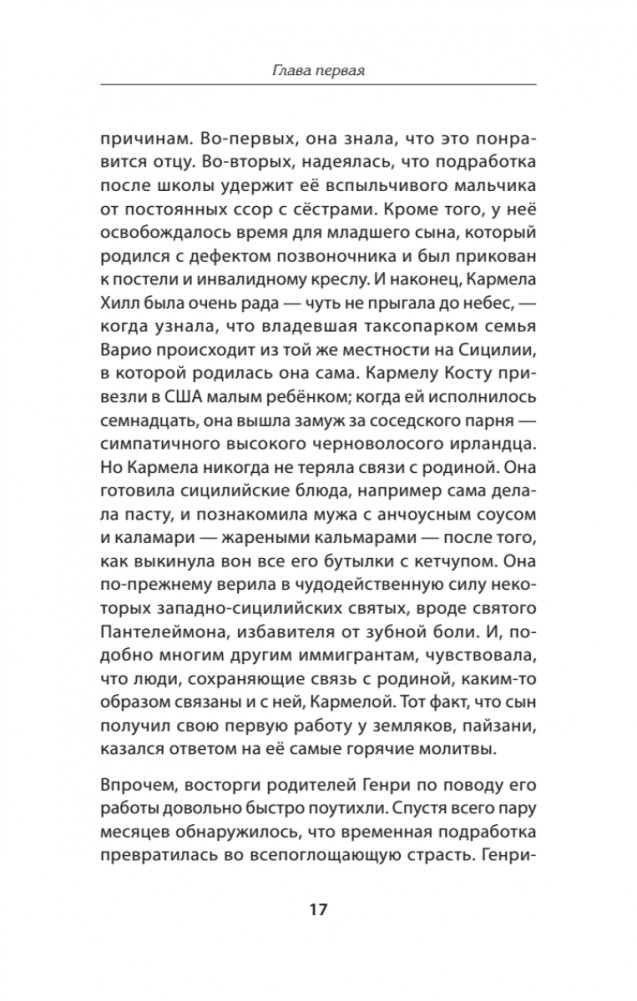 Генри Хилл был бандитом. Он был аферистом. Он строил козни, плёл интриги и проламывал головы. Он знал, как дать взятку и знал, как обуть лоха. Он работал в мафии на полную ставку в качестве рэкетира и громилы, он был rara avis — той редкой птицей, которую охотно изучили бы как социальные антропологи, так и копы. На улицах он и его друзья называли себя «умниками». Мне кажется, его история даёт уникальный взгляд изнутри на жизнь пехотинца оргпреступности, которую обычно описывают либо посторонние, либо capo di tutti capi, мафиозные боссы.