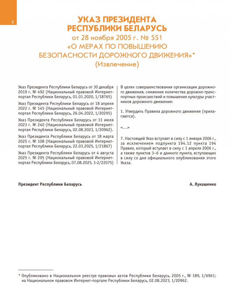 Учебное пособие разработано на основании Правил дорожного движения, утвержденных Указом Президента Республики Беларусь от 28 ноября 2005 г. № 551 «О мерах по повышению безопасности дорожного движения», с изменениями, внесенными Указом Президента Республики Беларусь от 4 августа 2025 г. № 295 «Об изменении Указа Президента Республики Беларусь», и в соответствии с Единой программой подготовки водителей механических транспортных средств категории «В», утвержденной постановлением Министерства транспорта и коммуникаций Республики Беларусь от 23 октября 2012 г. № 47 (с изменениями, внесенными постановлением Министерства транспорта и коммуникаций Республики Беларусь от 17 сентября 2024 г. № 83).