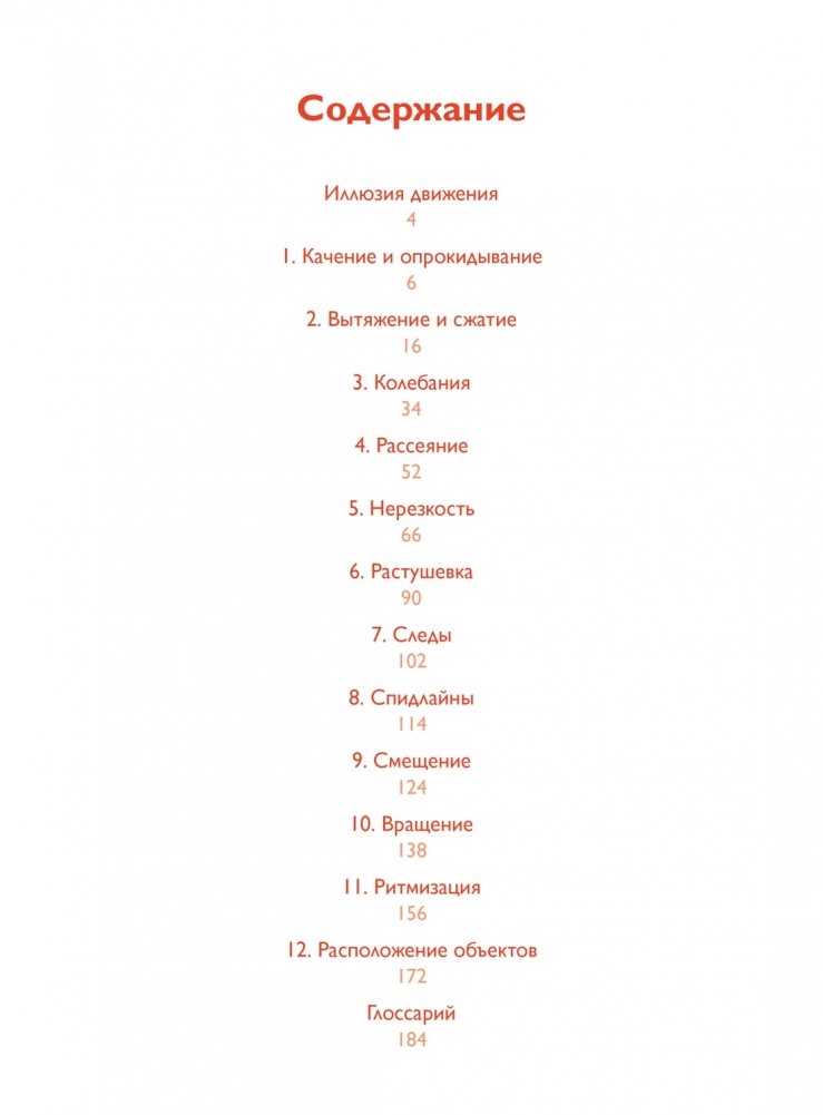 Нарисованные линии статичны, а создаваемые ими композиции могут передавать движение и эмоции. В этом емком прикладном руководстве, составленном двумя активно практикующими художниками, наглядно продемонстрировано, как наполнить картину динамикой. Книга состоит из 12 глав, в каждой из которых рассматривается один из способов передачи движения, в том числе вращение, размытость, деформация, смещение, ритмизация. В начале каждой главы помещен вводный текст, дающий краткие и информативные пояснения, а множество впечатляющих, при этом довольно простых в работе примеров ясно показывают, каким образом можно добиться того или иного визуального эффекта.