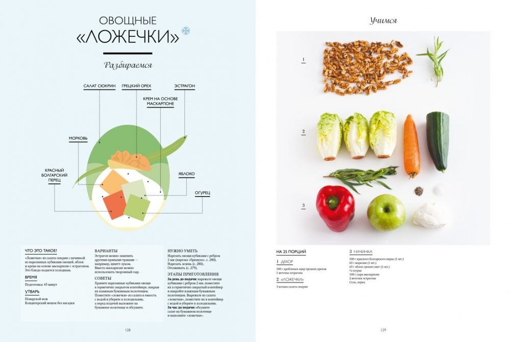 Вы познакомитесь с идеями подбора продуктов для порционных закусок и приемами кулинарной обработки, научитесь готовить основы блюд, лепешки и блинчики, соусы, приправы и кремы, делать выпечку, колбаски и баллотины. В отдельной главе представлены изысканные рецепты фуршетного меню: это заварные мини-пирожные, канапе-шашлычки, сэндвичи, шашлычки из фуа-гра с манго и пряничным хлебом, шашлычки из говядины под соусом гастрик, горячие мини-бургеры с говядиной, мини-бургеры с курицей и салатом из моркови и капусты, пирожные «Релижьёз» с кремом из болгарских перцев, пирожные «Париж-Брест» с козьим сыром и песто, морские гребешки с шафрановым соусом, гаспачо с помидорами и клубникой, печенье макарон с шоколадом, мини-торты «Сент-Оноре», панна-котта с ананасом и другие закуски и десерты.