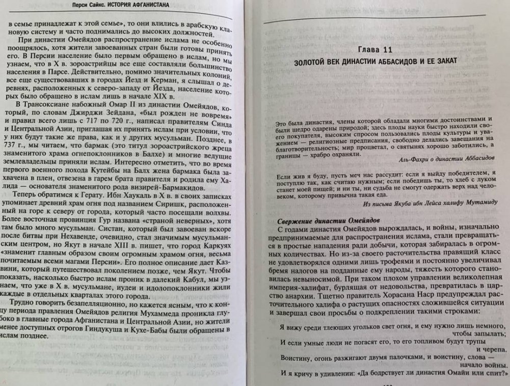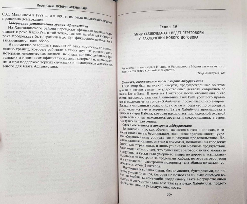 Книга британского историка и дипломата Перси Сайкса наиболее полно и достоверно воспроизводит историю Афганистана — государства, которое долгое время было центром борьбы за власть ввиду своего географического и стратегического положения. Автор описывает важнейшие исторические и политические события, происходившие на Среднем Востоке с древнейших времен до осады Герата в 1833 г., а также историю Афганистана с Первой англоафганской войны, закончившейся оккупацией Кабула, до убийства короля Надиршаха и восшествия на престол Захиршаха в 1933 г. Раздел «Приложения» включает ряд важнейших документов — договоры, письма и соглашения, — в том числе Симлский манифест (1938 г.).