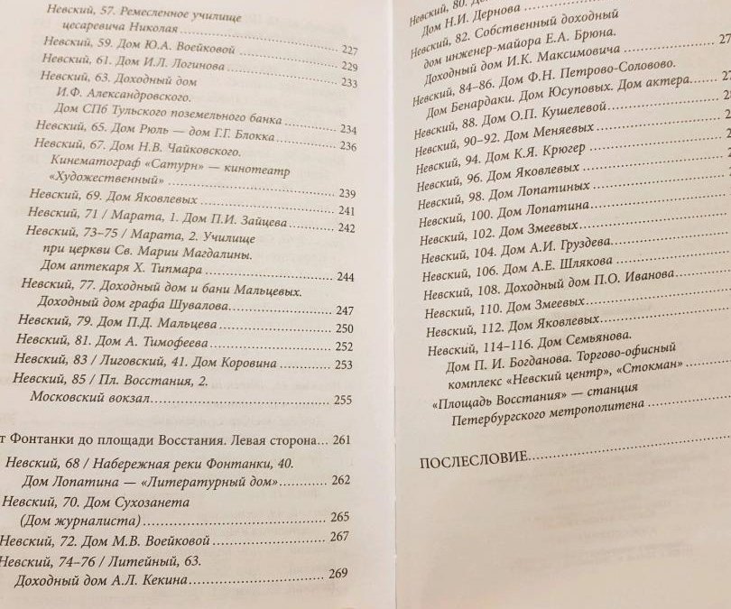 Автор неспешно ведет нас по Невскому проспекту от первого дома до Московского вокзала и площади Восстания, попутно рассказывая об истории домов и их обитателей. Книга полна увлекательных приключений и баек, связанных с городом на Неве и конкретно с Невским проспектом. Подойдя к Пассажу, вы узнаете, что когда-то здесь стоял дом убившего Пушкина Дантеса и то, что первой владелицей того же Пассажа была хрупкая неприметная женщина, придумавшая и воплотившая сложный проект в то время, когда женщины с великим трудом находили себе работу. Прочтете о великом шпионе Клеточникове, проживавшем некогда в доме № 96 и внедренном народовольцами в Третье отделение, дабы он сообщал о любых движениях полиции революционерам-бомбистам… Таких историй в книге великое множество.