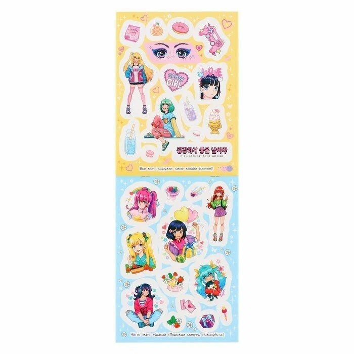 Для всех поклонников аниме. Классные девчонки-подружки и много кавайных деталей! Наклейками можно украсить ежедневник, тетради, скетчбук, телефон и многое другое!