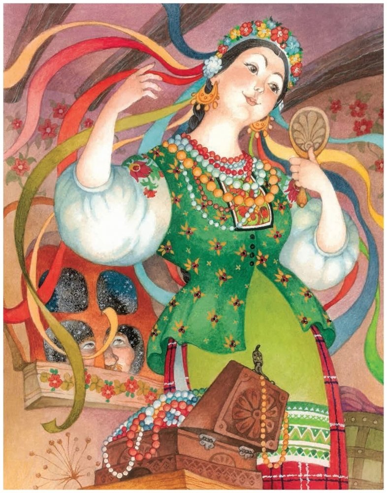 Пронизанные духом Рождества, иллюстрации художницы Ольги Ионайтис создают неповторимый колорит волшебной сказки. Несомненно, и взрослые, и дети получат большое удовольствие, перечитав невероятную историю о том, как черт украл месяц, и о том, как кузнец Вакула летал к царице в Петербург за черевичками для своей возлюбленной Оксаны.
