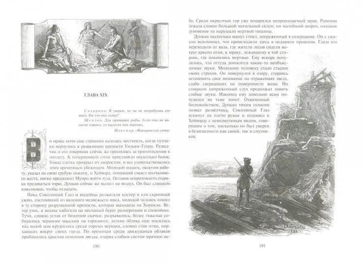 Цикл романов о Натаниэле Бампо - Кожаном Чулке (он же Зверобой, Соколиный Глаз, Следопыт, Длинный Карабин) принес Джеймсу Фенимору Куперу (1789-1851) мировую славу.Настоящее издание романа "Последний из могикан", входящего в пенталогию о Натти Бампо, включает в себя полный комплект из 137 рисунков польского художника Михала Эльвиро Андриолли. Всемирную известность как лучший иллюстратор Купера он приобрел после создания цикла из 576 рисунков к его романам - "Шпион" (1884), "Последний из могикан" (1884), "Пионеры" (1885), "Прерия" (1885).