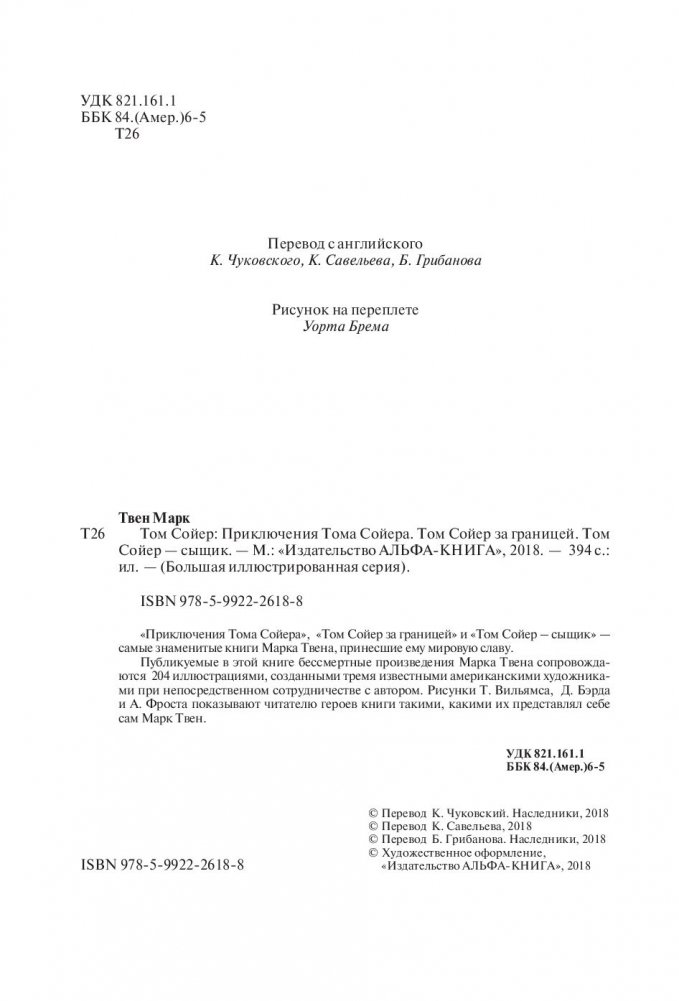 "Приключения Тома Сойера", "Том Сойер за границей" и "Том Сойер - сыщик" - самые знаменитые книги Марка Твена, принесшие ему мировую славу.Публикуемые в этой книге бессмертные произведения Марка Твена сопровождаются 204 иллюстрациями, созданными тремя известными американскими художниками при непосредственном сотрудничестве с автором.