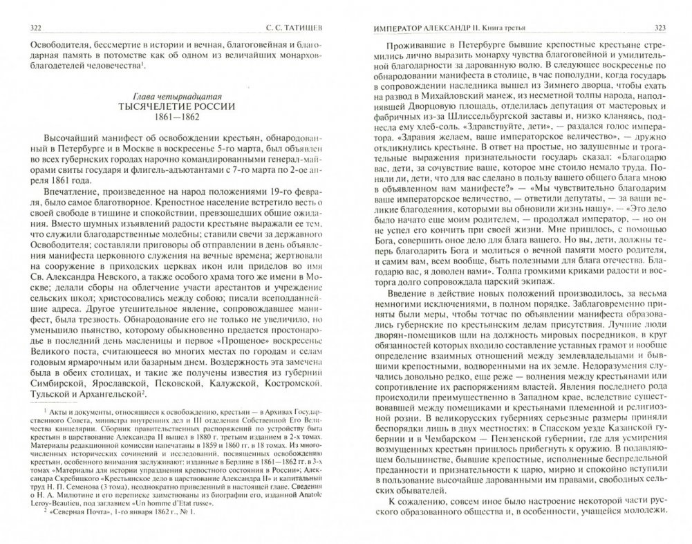 В одном томе публикуется фундаментальный труд известного русского дипломата, историка и публициста - Сергея Спиридоновича Татищева (1846-1906), посвященный жизни и царствованию российского императора Александра II (1818-1881). Автор был не только современником царя-Освободителя, свидетелем великих преобразований, но и непосредственным участником исторических событий, происходивших в описываемую эпоху. В своей книге С. Татищев, основываясь на документах и материалах из отечественных и зарубежных архивов, блестяще передал историческую атмосферу эпохи императора Александра II, отразил незаурядную роль самодержца в общественных, политических и социальных преобразованиях жизни России.
