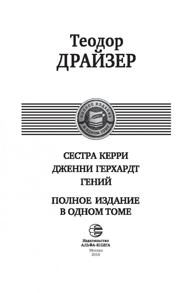 Альфа-книга. Сестра Керри. Гений. Дженни Герхард. Полное издание в одном томе