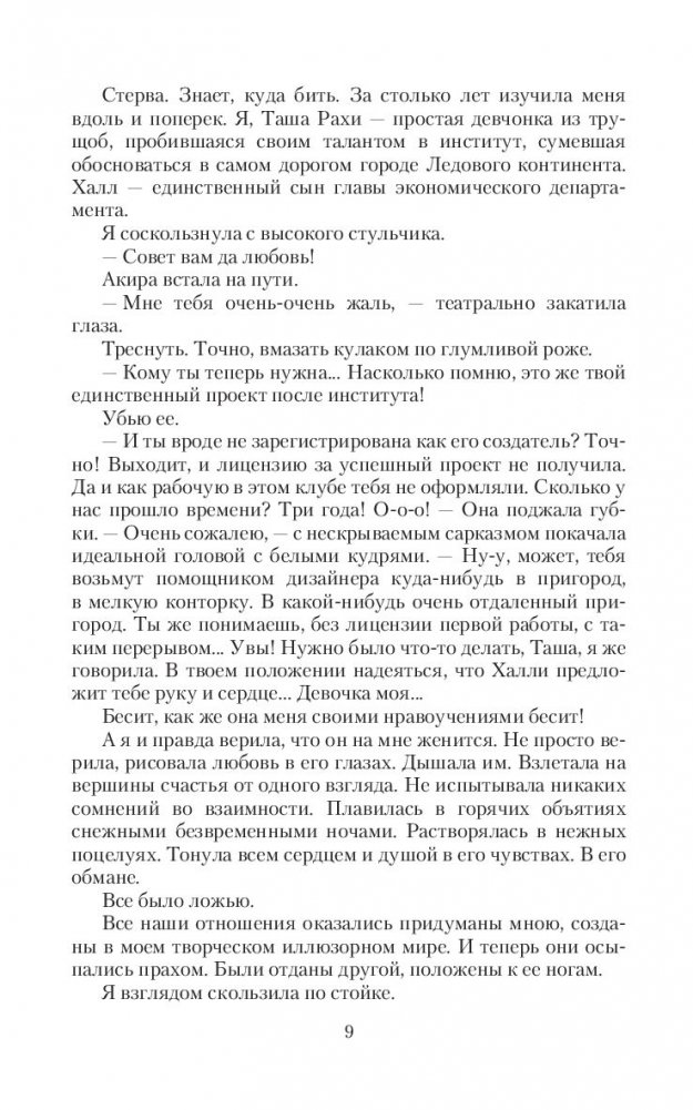 Нарршари - высшие парящие. Они наш закон. Нарршари подчиняют одним взглядом. Мой мир принадлежит им. Оскорбить нарршари - подписать себе смертный приговор. Я умудрилась это сделать. Я - Таша Рахи.Еще вчера у меня было все. Вера в счастливое завтра, любимый мужчина, лучшая подруга и проект, благодаря которому я могла получить лицензию на светлую и обеспеченную жизнь.Сегодня я потеряла все. Любимого мужчину, подругу. И надежду хоть на какое-то будущее. Но я не привыкла сдаваться. И заключила пари. На кону теперь не только моя честь, моя карьера и право выжить в городе вечного снега, на кону - любовь и, возможно, я сама.