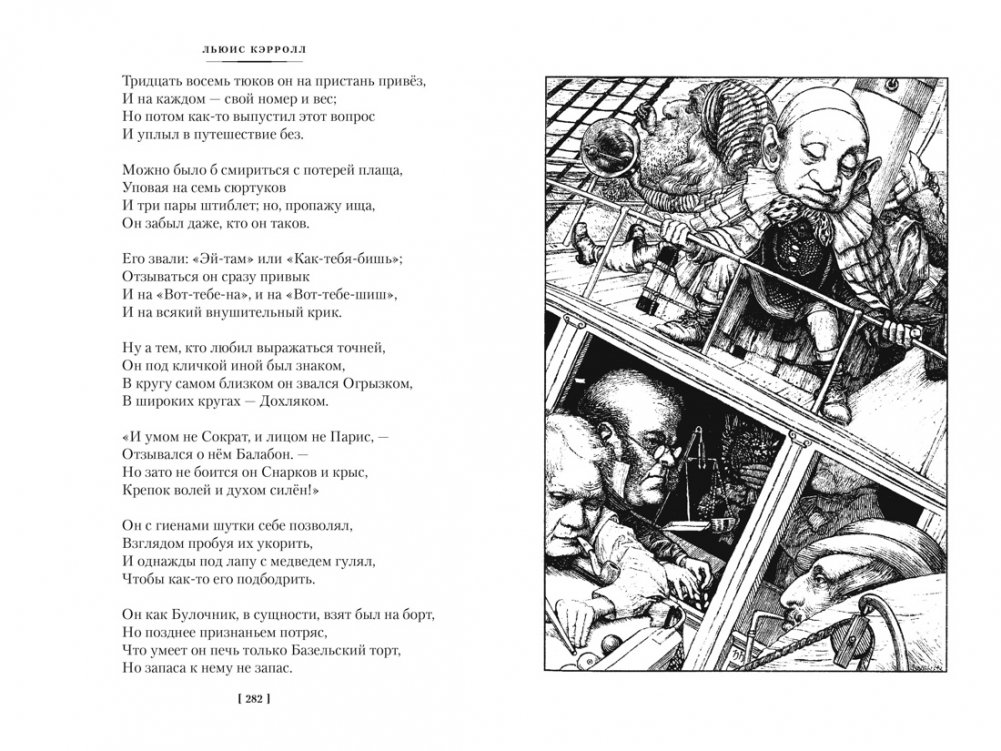 В настоящий сборник вошли полные логических парадоксов сказки об Алисе в классическом переводе Нины Демуровой, включая главу «Шмель в парике», изъятую самим автором из первого издания «Алисы в Зазеркалье», с иллюстрациями Джона Тенниела и исполненная нонсенса и абсурда юмористическая поэма «Охота на Снарка» в переводе Григория Кружкова с иллюстрациями Генри Холидэя. А также всеми любимый пересказ «Алисы» от Бориса Заходера, мир которой очень правдоподобно изобразил замечательный художник Геннадий Калиновский.