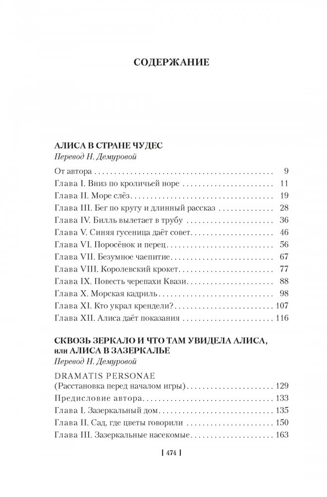 Две небольшие повести Льюиса Кэрролла «Алиса в Стране чудес» и «Алиса в Зазеркалье» давно стали классикой английской и мировой литературы. В XX веке герои Кэрролла заговорили едва ли не на всех языках мира, ожили в спектаклях, мюзиклах, мультфильмах вплоть до знаменитой экранизации Тима Бёртона. Множество исследований посвящено изучению отсылок и аллюзий, зашифрованных автором на страницах сказок, однако волшебство этих текстов продолжает жить и очаровывать новые поколения читателей, оставаясь всё таким же загадочным и необъяснимым.
