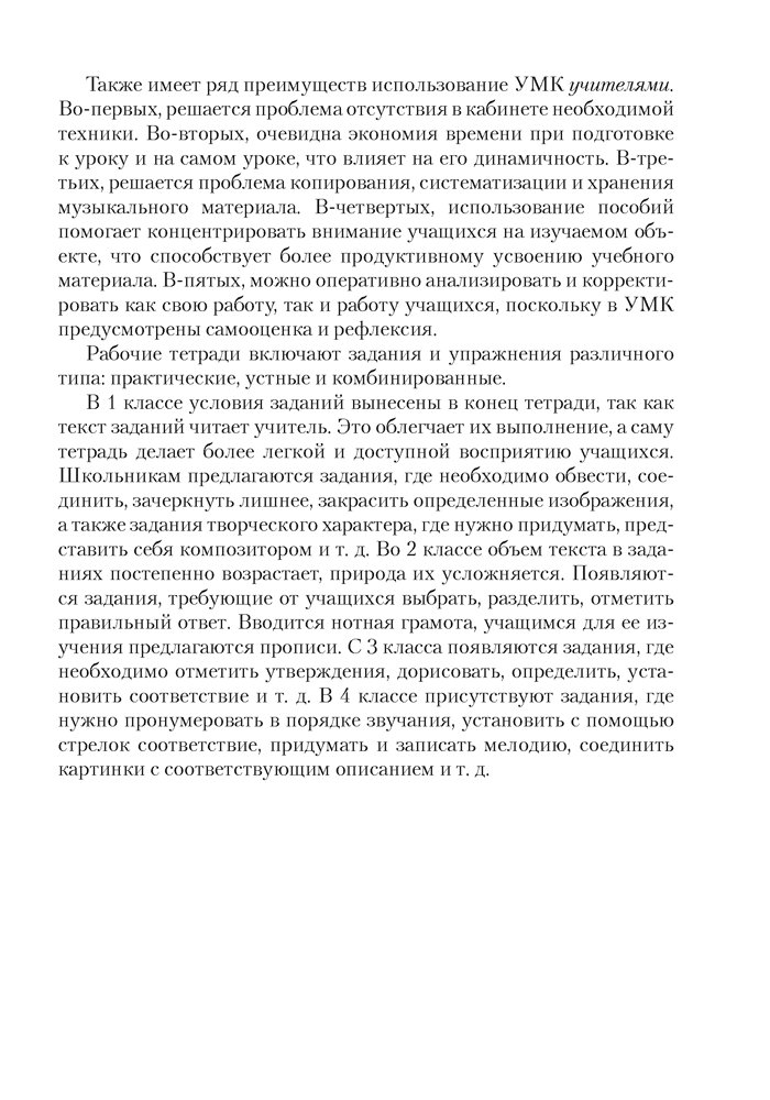 Пособие содержит методические рекомендации и разработки уроков музыки для 1—4 классов, которые соответствуют учебной программе. Представленный материал поможет педагогам в организации и проведении занятий с использованием рабочих тетрадей, демонстрационных плакатов и карточек-гексов по предмету (автор Н. Н. Грачёва).