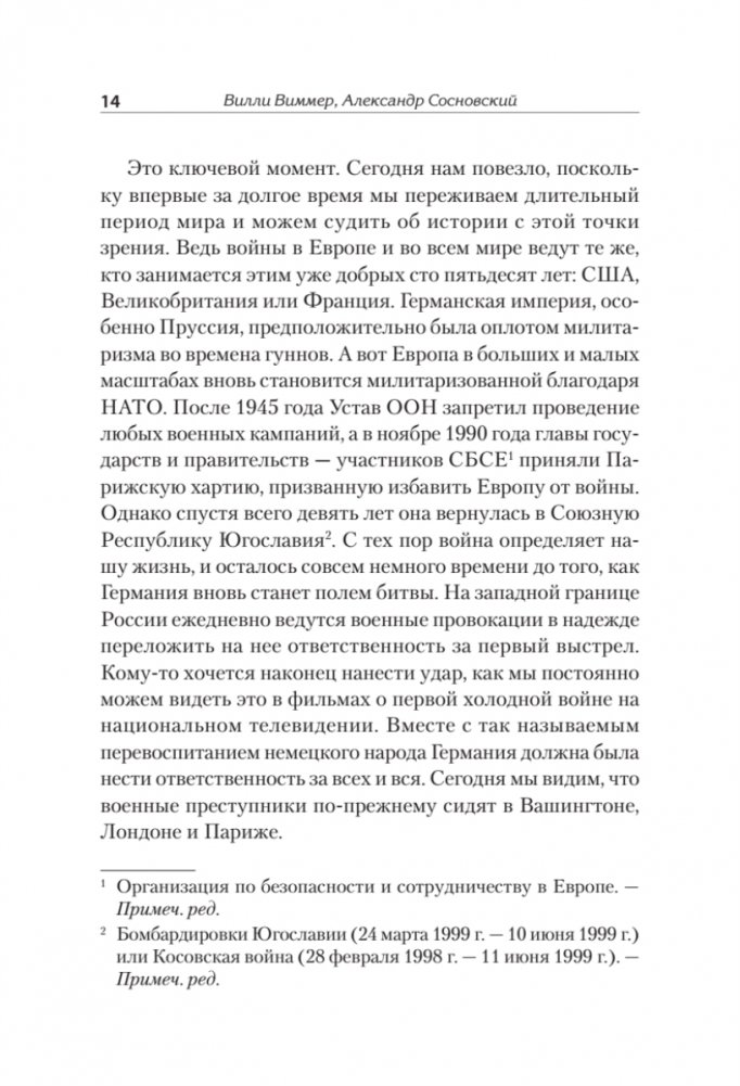 В этой книге профессор Александр Сосновский, публицист и корреспондент многочисленных политических СМИ, обсуждает с экспертом по безопасности и парламентским государственным секретарем Вилли Виммером жесткие, но важные вопросы. Ответы на них помогут прояснить картину истории и по-иному взглянуть на события сегодняшнего дня.