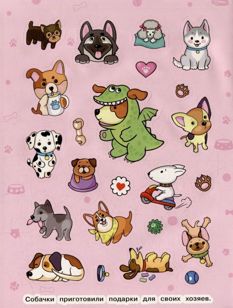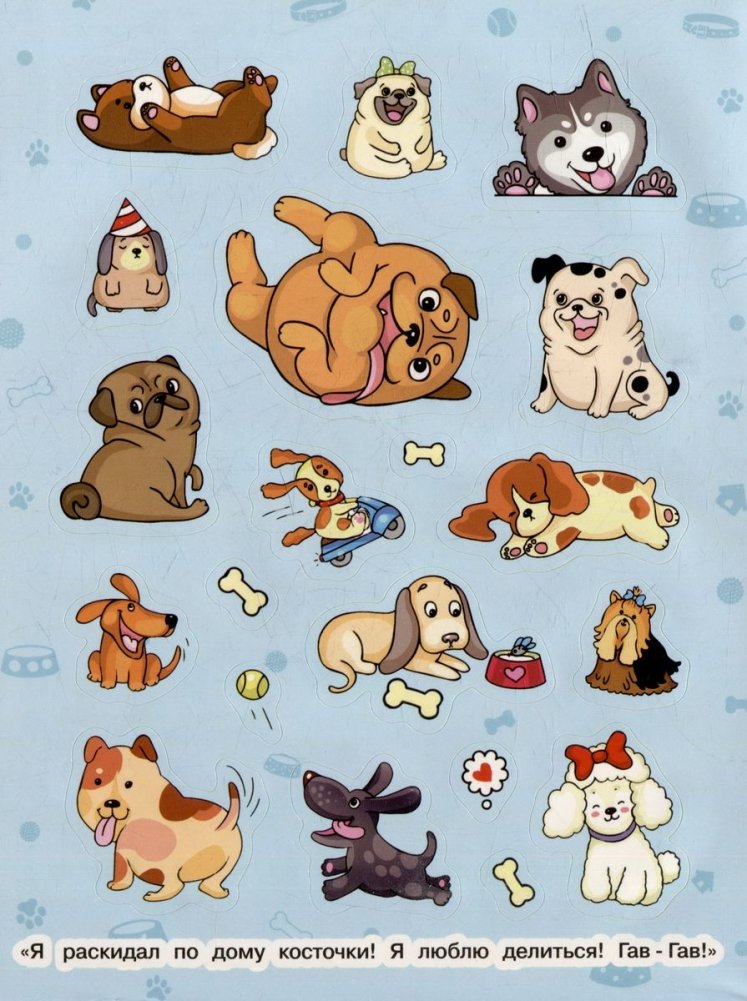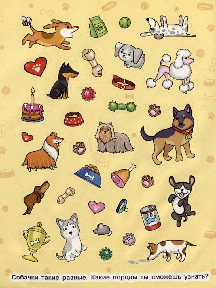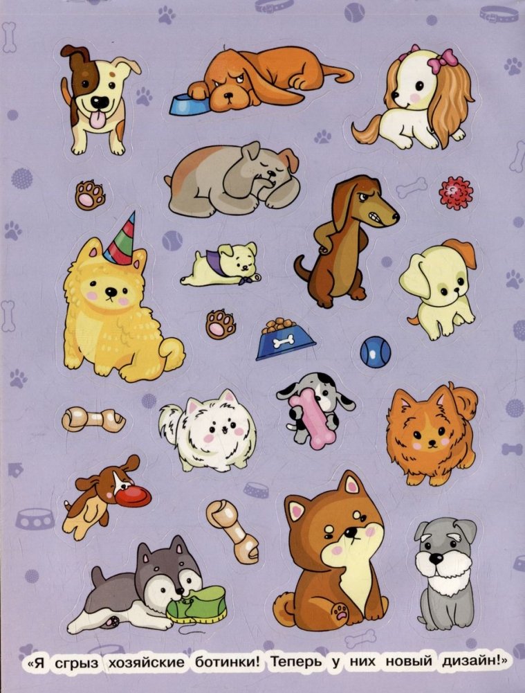 Какие породы собак ты знаешь? В коллекции наклеек собраны более 30 пород. Забавные собачки обожают играть и очень любят своих хозяев, поэтому наводят порядок в шкафу – грызут ботинки, а в холодильнике прячут сардельки. Наклейками можно украсить ежедневник, тетради, скетчбук, телефон и многое другое!