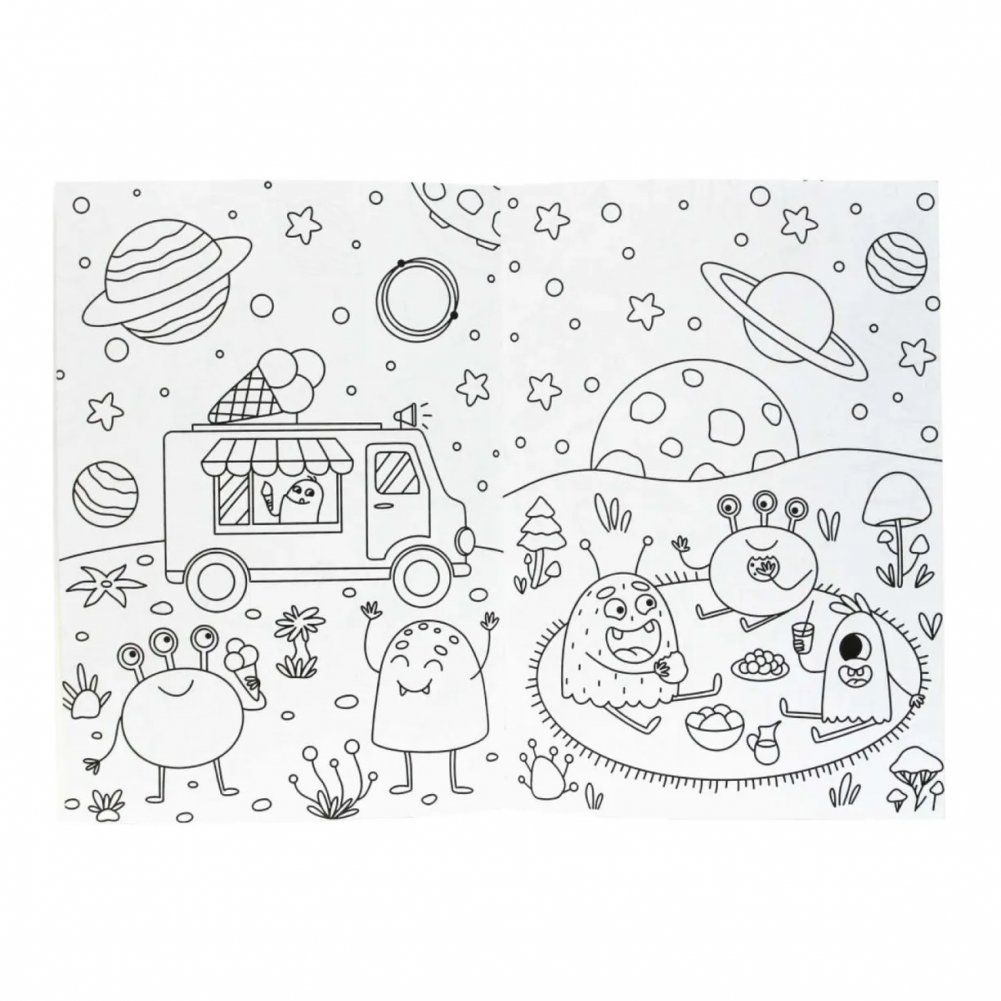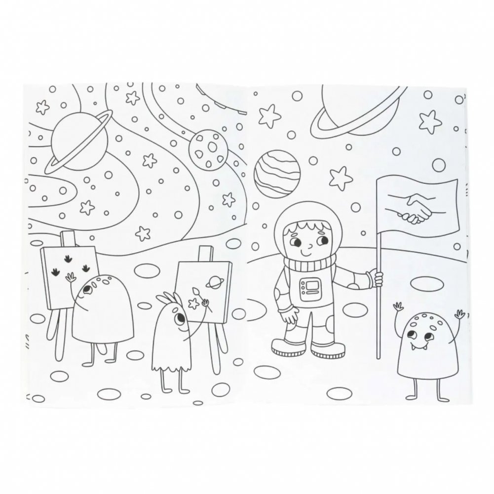 Раскраска с карандашами "На другой планете"