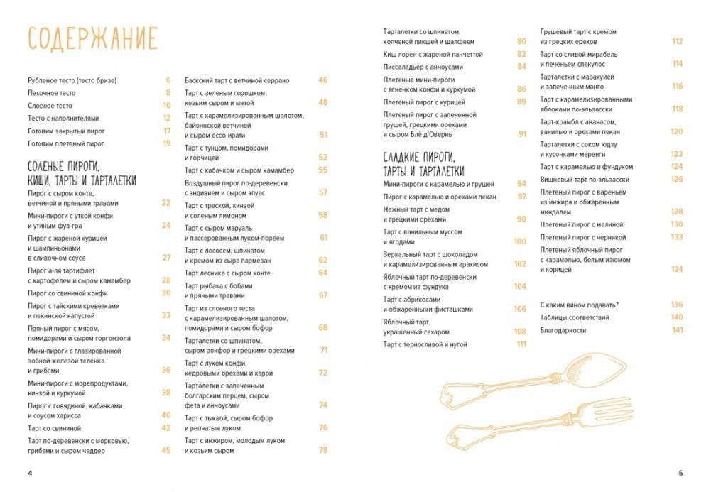 Достойная коллекция рецептов открытых, закрытых и плетеных пирогов, кишей, тартов и тарталеток, которые украсят ваш стол в будни и в праздники в качестве основного блюда или десерта. Вы узнаете, как готовить основу для множества разновидностей пирогов (тесто бризе, песочное, слоеное тесто, тесто с разными добавками и наполнителями) и познакомитесь с замечательным разнообразием нежных и сытных начинок. Сыр, овощи, ветчина, картофель, креветки, орехи, грибы, пряные травы, сливки, варенье, джем — ваши любимые продукты, самые свежие и ароматные, лягут в основу отменных начинок для свежеиспеченных пирогов, создающих уют и гармонию в вашем доме!