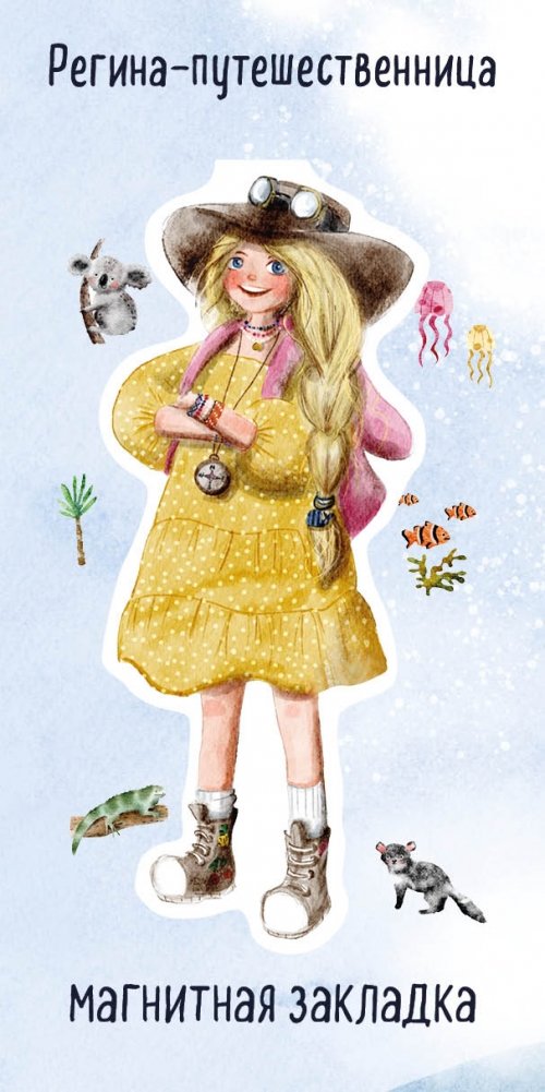Уже прочитали историю о том, как отважная путешественница Регина и ее верный друг, игуана Людмила Иосифовна, посетили Австралию? Узнали от них как остановить цунами, почему вулканы бывают полезны и что такое эпоха сновидений? Тогда эта фигурная магнитная закладка с Региной-путешественницей специально для вас и вашего ребенка! Закладка выполнена из плотного ламинированного картона по принципу клипсы: зажимает страницу книги между двух магнитов. Удобный формат позволяет выделять одну или несколько страниц сразу, и можно продолжить чтение с того места, где остановились. Грандиозная миссия Регины по спасению мира продолжается - ждут только вас!