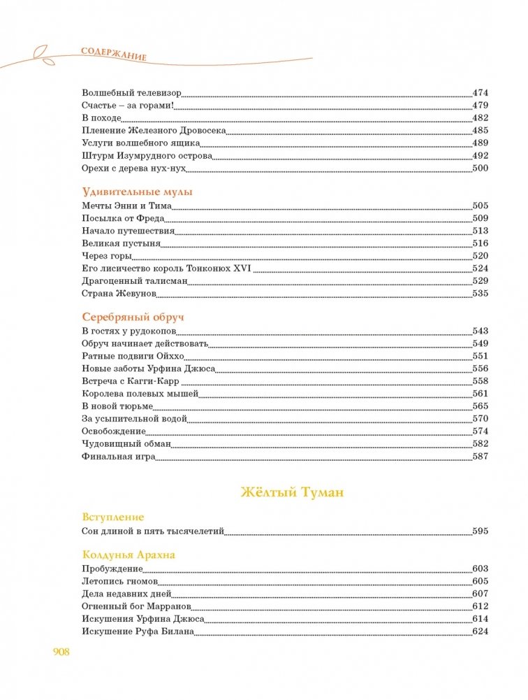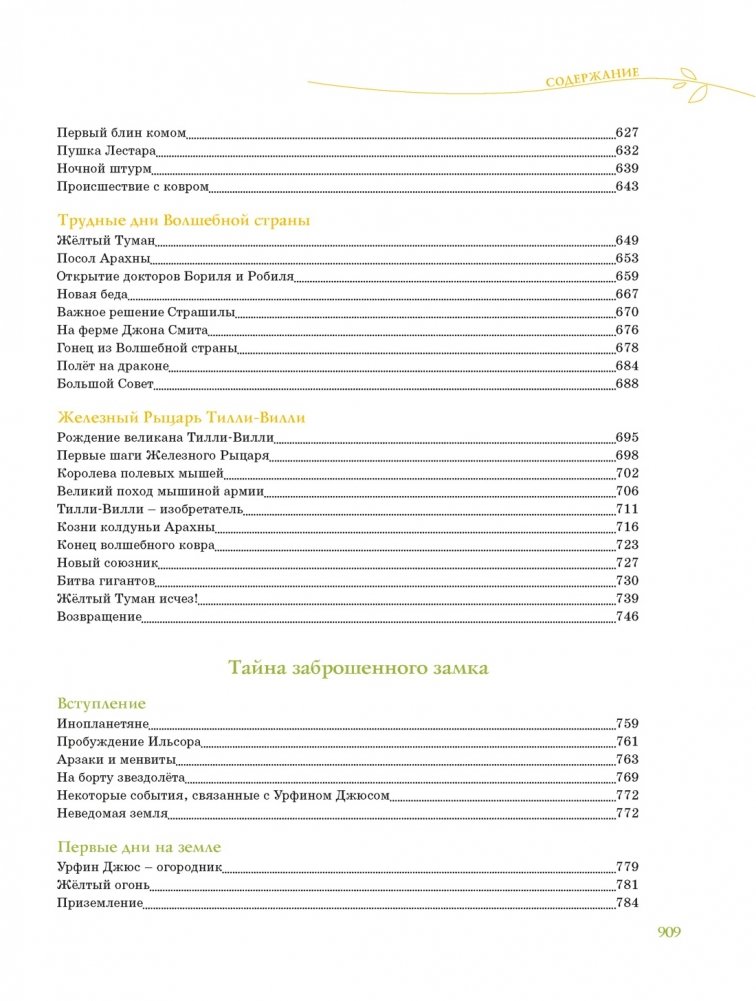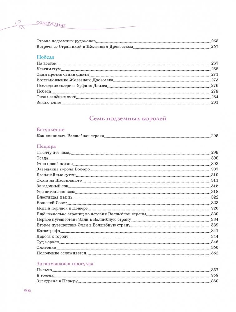 В этой книге собраны все шесть сказочных повестей о приключениях Элли и её друзей в Волшебной стране: «Волшебник Изумрудного города», «Урфин Джюс и его деревянные солдаты», «Семь подземных королей», «Огненный бог Марранов», «Жёл- тый Туман», «Тайна заброшенного замка».