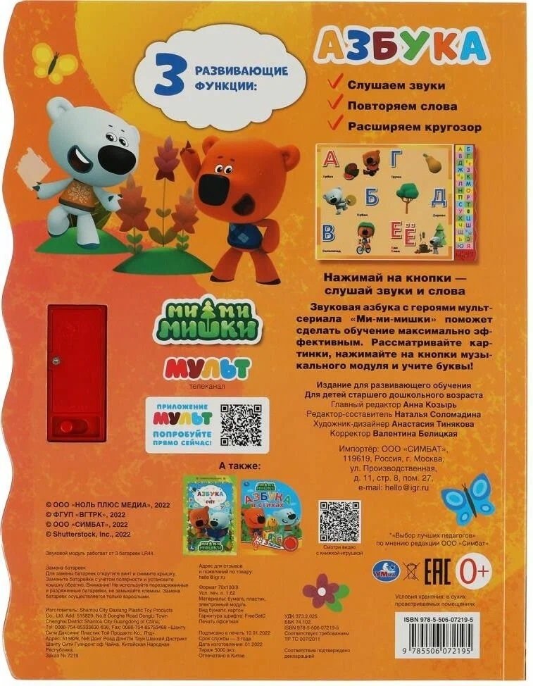 Озвученная книга Ми-ми-мишки Азбука – это не просто подарок для малыша. Это подарок любознательности и творчества. Развивающая книга игрушка, обретшая голос. Нажимая кнопку, вы открываете дверь в увлекательный мир слов и звуков. Обучение становится легким и увлекательным.