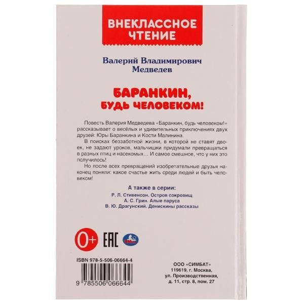 Баранкин, будь человеком! Внеклассное чтение. В.В.Медведев. 125х195мм. 192стр. Книга «В. Медведев. Баранкин, будь человеком!» из серии «Внеклассное чтение» - отличный вариант для самостоятельного чтения вне занятий в школе: