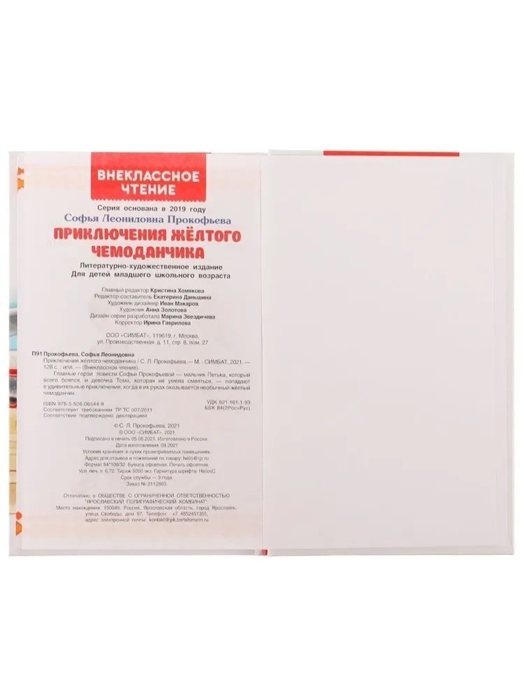 Приключения жёлтого чемоданчика. Прокофьева С. Л. Внеклассное чтение.125х195. Книга «С. Л. Прокофьева. Приключения жёлтого чемоданчика» из серии «Внеклассное чтение» - отличный вариант для самостоятельного чтения вне занятий в школе:- произведение напечатано без сокращений- яркие крупные картинки- крупный шрифт- твёрдый переплёт- удобный формат- соответствует ФГОСПовесть-сказка Софьи Прокофьевой о Детском Докторе и его волшебном жёлтом чемоданчике, где найдётся чудесное лекарство от трусости, болтливости, печали и прочих подобных «недугов», непременно увлечёт юного читателя. Произведение рекомендовано ФГОСом и различными образовательными программами детям младшего школьного возраста для внеклассного чтения. Благодаря компактному размеру книгу удобно брать с собой в дорогу.Чтение книг из серии «Внеклассное чтение» расширяет кругозор и развивает:- образное мышление- визуальное восприятие- внимание- память- речьОбъём: 128 стр. Формат: 125 х 195 мм (А5).Материал: офсетная бумага.Рекомендовано детям младшего школьного возраста.