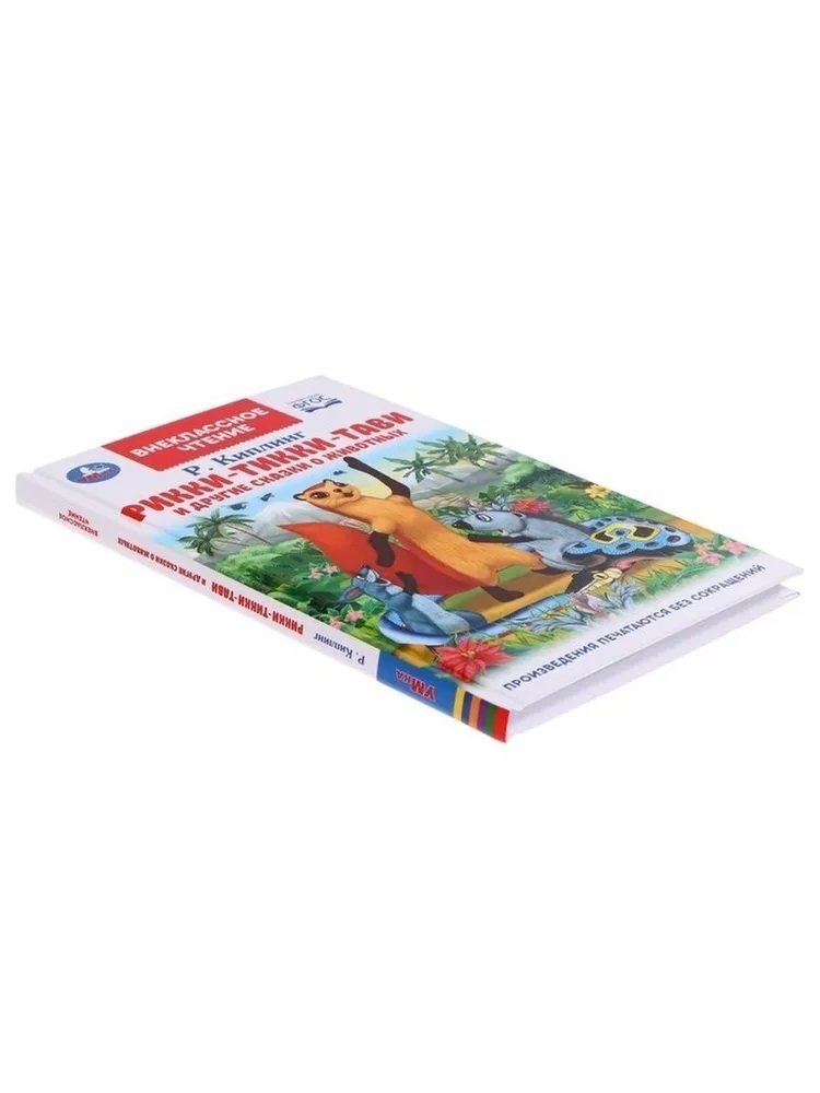 Книга «Р. Киплинг. Рикии-Тикки-Тави и другие сказки о животных» из серии «Внеклассное чтение» ТМ «УМка» - отличный вариант для самостоятельного чтения вне занятий в школе: - 4 сказки: «Рикки-Тики-Тави», «Слонёнок», «Отчего у верблюда горб», «Кошка, гулявшая сама по себе» - произведения напечатаны без сокращений - яркие крупные картинки - крупный шрифт - твёрдый переплёт - удобный формат - соответствует ФГОС Интересные сказочные истории, написанные известным английским писателем Редьярдом Киплингом, и красочные иллюстрации непременно увлекут юного читателя. Произведения рекомендованы ФГОСом и различными образовательными программами детям младшего школьного возраста для внеклассного чтения. Благодаря компактному размеру книгу удобно брать с собой в дорогу. Чтение книг из серии «Внеклассное чтение» ТМ «УМка» расширяет кругозор и развивает: - образное мышление - визуальное восприятие - внимание - память - речь Объём: 128 стр. Формат: 125 х 195 мм (А5). Материал: офсетная бумага. Рекомендовано детям младшего школьного возраста.
