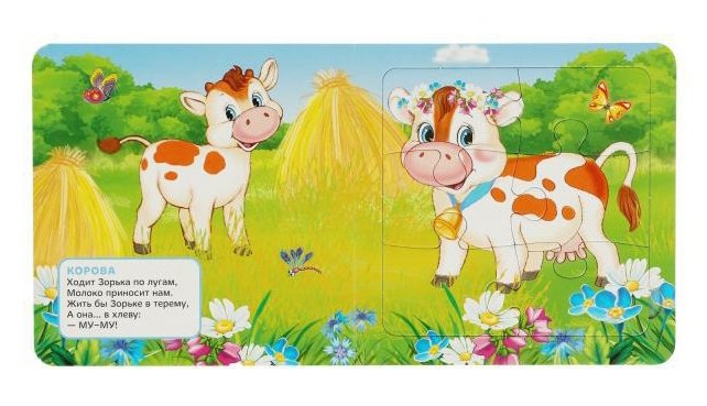 Данная книга выполняет сразу 2 функции: это и книга для чтения, и игра в пазлы. На каждом развороте малыша ждёт интересный стих Владимира Степанова, а также яркий пазл с изображением милых животных. Книжка изготовлена из плотного картона, поэтому мамы могут не опасаться, что ребёнок порвёт странички. Благодаря удобному формату книгу можно взять с собой в дорогу.