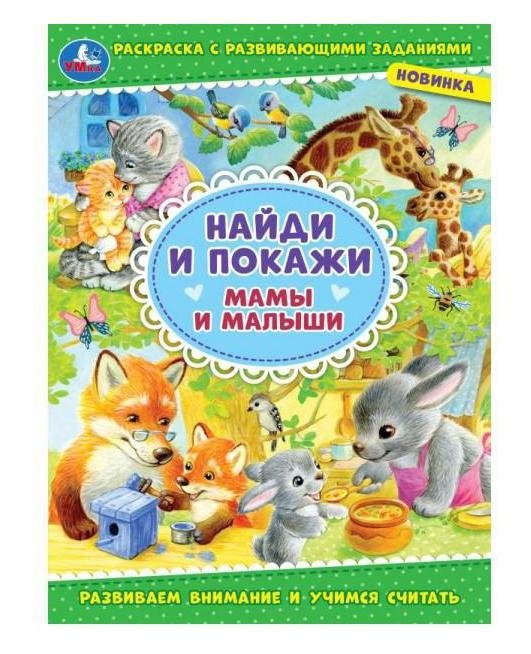 На каждой странице этой замечательной раскраски вы найдёте красивые картинки и занимательные задания на внимание и сообразительность. Вместе с милыми мамами и малышами ваш ребёнок будет обучаться с удовольствием!