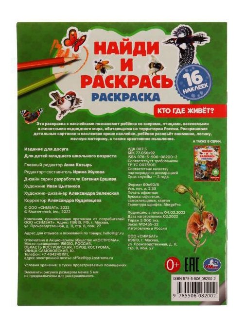 Раскраска с наклейками «Кто где живёт?» из серии «Найди и раскрась» ТМ «УМка» станет оригинальным подарком для маленького любознайки: