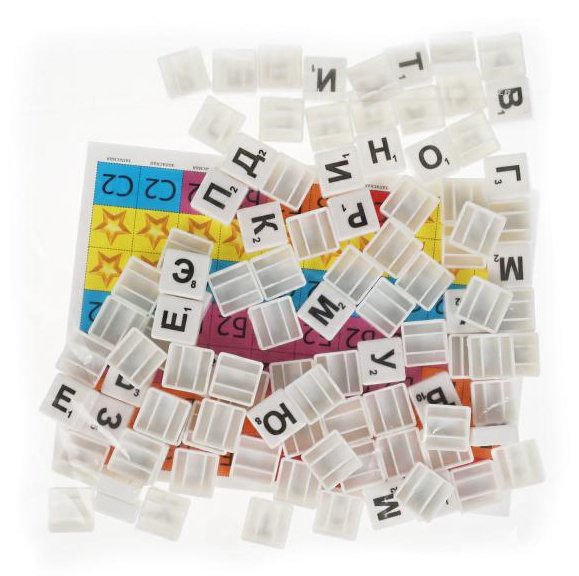 - 100 пластиковых игровых фишек с буквами