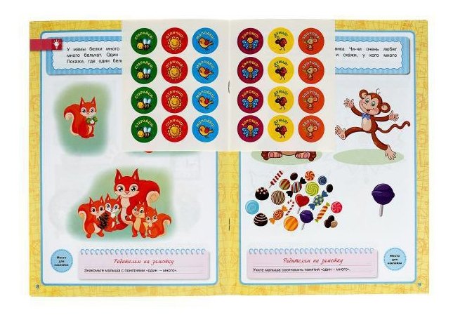Данная тетрадь содержит комплекс упражнений, направленных на знакомство ребёнка с цифрами и развитие у него первых навыков счёта. Яркие картинки и занимательные задания не дадут маленькому любознайке заскучать и сделают занятия интересными и весёлыми. Для эффективного обучения достаточно заниматься с детьми по 15 минут в день - главное, поддерживать их интерес и хвалить за успехи, в чём отлично помогут поощрительные наклейки.