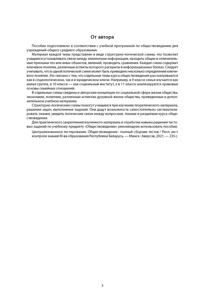 Пособие содержит теоретический материал по обществоведению для 9—11 классов, составленный в соответствии с обновленными программами 2023 г. и структурированный в виде схем и таблиц. Логические схемы кратко и наглядно отражают содержание каждой темы и логику курса в целом. Издание предназначено для систематизации знаний учащихся, подготовки к централизованному экзамену, централизованному тестированию и олимпиадам по предмету.