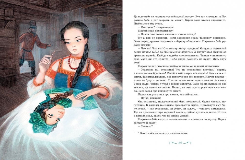 «Малахитовая шкатулка» – сборник удивительных и неповторимых по красоте сказов. Их герои, простые люди, сталкиваются в повседневной жизни с волшебными созданиями, которые существуют независимо от воли человека и показываются лишь избранным. И каждая встреча не проходит бесследно. Так Танюшке достаётся в наследство шкатулка с украшениями из драгоценных камней, Данило-мастер отправляется в царство Хозяйки Медной горы за каменным цветком, а Серебряное копытце одаривает самоцветами Кокованю и Дарёнку. Произведения Павла Бажова увлекают в свой сказочный мир и рассказывают о смелых и честных героях.