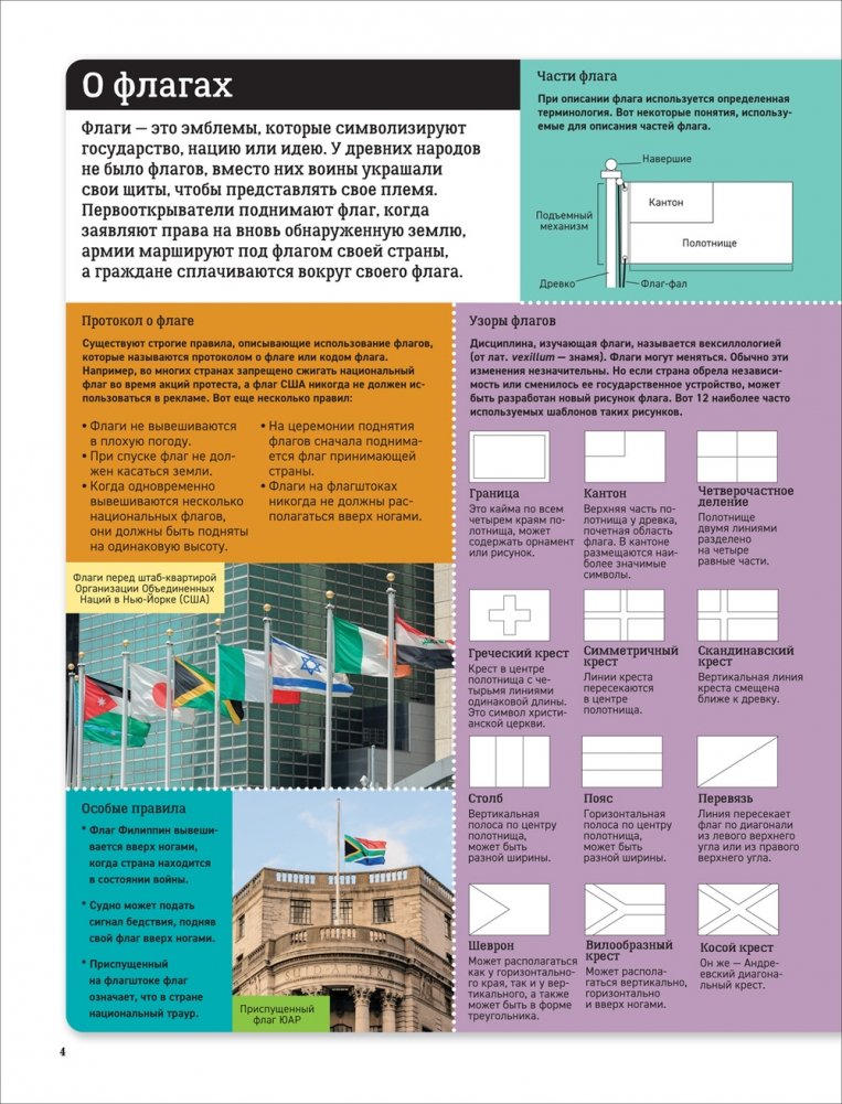 Национальные флаги отражают народные традиции и политическое устройство различных государств, поэтому изучение флагов помогает понять историю и культуру страны. Прочитав эту книгу, вы запомните, как выглядят флаги всех стран мира, узнаете, где находится та или иная страна и что в ней в данный момент происходит. Но прежде всего, она рассказывает увлекательные истории, стоящие за некоторыми флагами.