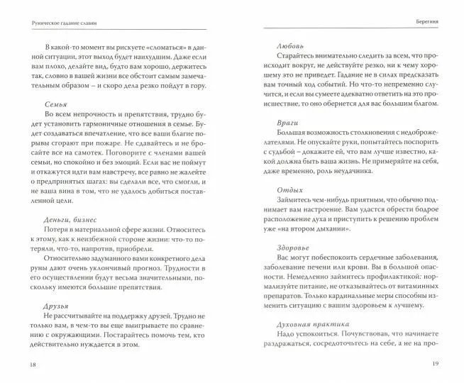 Термин Руны происходит от древнегерманского корня run ("тайна"). Это записи, иероглифы, которые обозначают магическую обереговую атрибутику. В древнеславянской традиции руны применялись в качестве защиты от порчи, сглаза и различных несчастий. Также они служили индивидуальными амулетами для защиты дома, семьи и даже целого рода, поэтому могли наноситься практически на любую поверхность. Однако защита не единственное предназначение рун, они являлись также и средством гадания. Рунические гадания были особенно популярны на территории средней Европы. Данная книга посвящена одному из видов такого гадания, гаданию на кости в виде кубика с нанесенными поверх рунами. В повседневной жизни оно поможет ответить на самые различные вопросы: предстоящая поездка, беспокойство за близких людей, заболевание, забота об урожае, создание семьи и многое другое.
