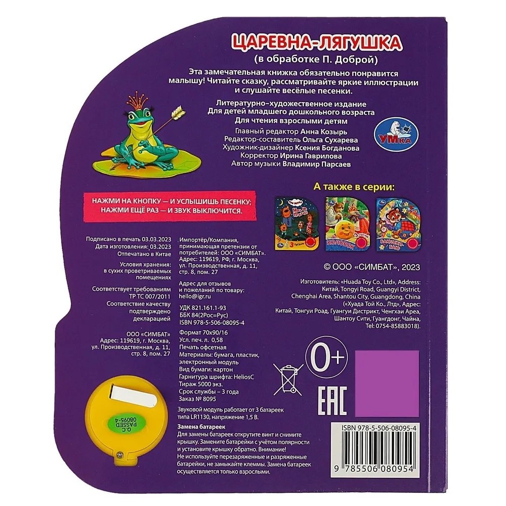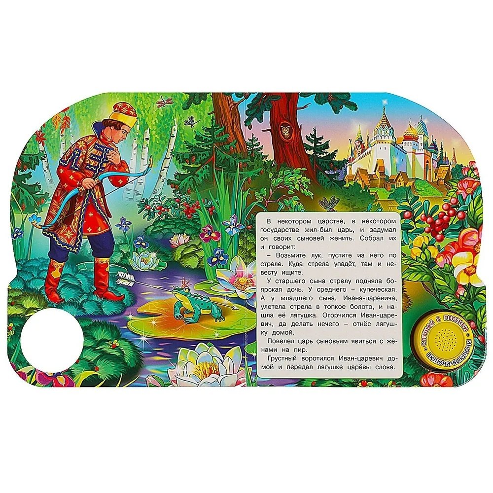Волшебная история, оживающая перед глазами. Представьте книгу, специально созданную для самых маленьких читателей. Музыкальная книга с глиттером Царевна лягушка - увлекательное приключение в формате игрушки.