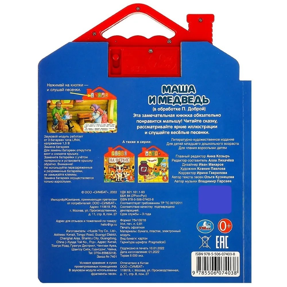 Погрузитесь в магический мир сказок вместе с музыкальной книгой "Маша и Медведь"! Этот подарок станет настоящим сокровищем для маленьких любознателей, предоставив им возможность погрузиться в звуковой и визуальный мир известной сказки.