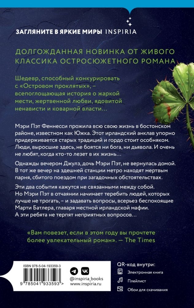 Мэри Пэт Феннесси прожила всю свою жизнь в бостонском районе, известном как Южка. Этот ирландский анклав упорно придерживается старых традиций и гордо стоит особняком. Люди, выросшие здесь, не боятся ни бога, ни дьявола. И очень не любят, когда кто-то лезет в их жизнь…