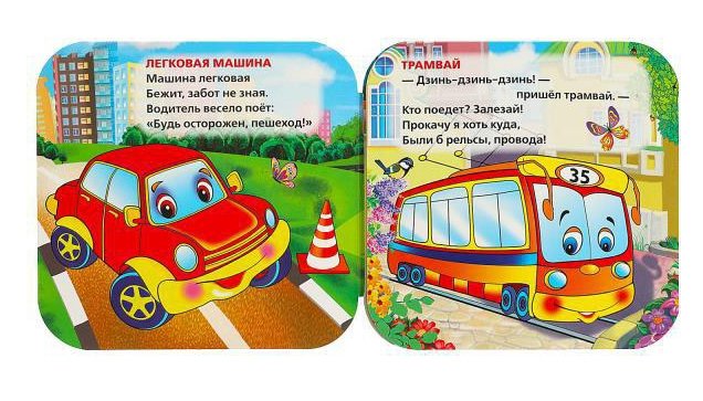 Ребёнок с удовольствием будет разглядывать яркие картинки и слушать интересные стихотворения Марины Дружининой про разные транспортные средства. Благодаря компактному размеру книгу удобно брать с собой в путешествие.