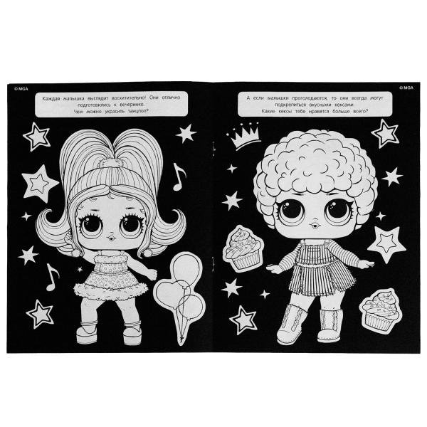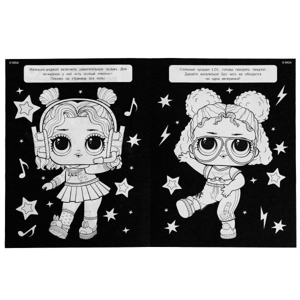 Чёрная-пречёрная раскраска «ЛОЛ. Королева вечеринки» ТМ «УМка» станет прекрасным подарком для юной художницы: