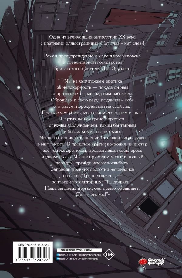 История маленького человека, обнаружившего в себе волю к протесту в мире, где правящая партия неусыпно следит за своими гражданами, подавляя любое их стремление к свободе. Сломает ли его давление системы, или он сохранит свой бунтарский дух – этот вопрос ставит Джордж Оруэлл перед читателем в известнейшем романе-антиутопии XX века.
