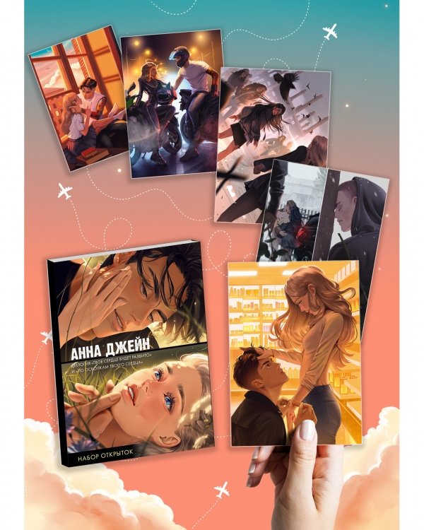 Набор из 15 открыток по романам Анны Джейн «Твое сердце будет разбито» и «По осколкам твоего сердца» понравится всем поклонникам писательницы!