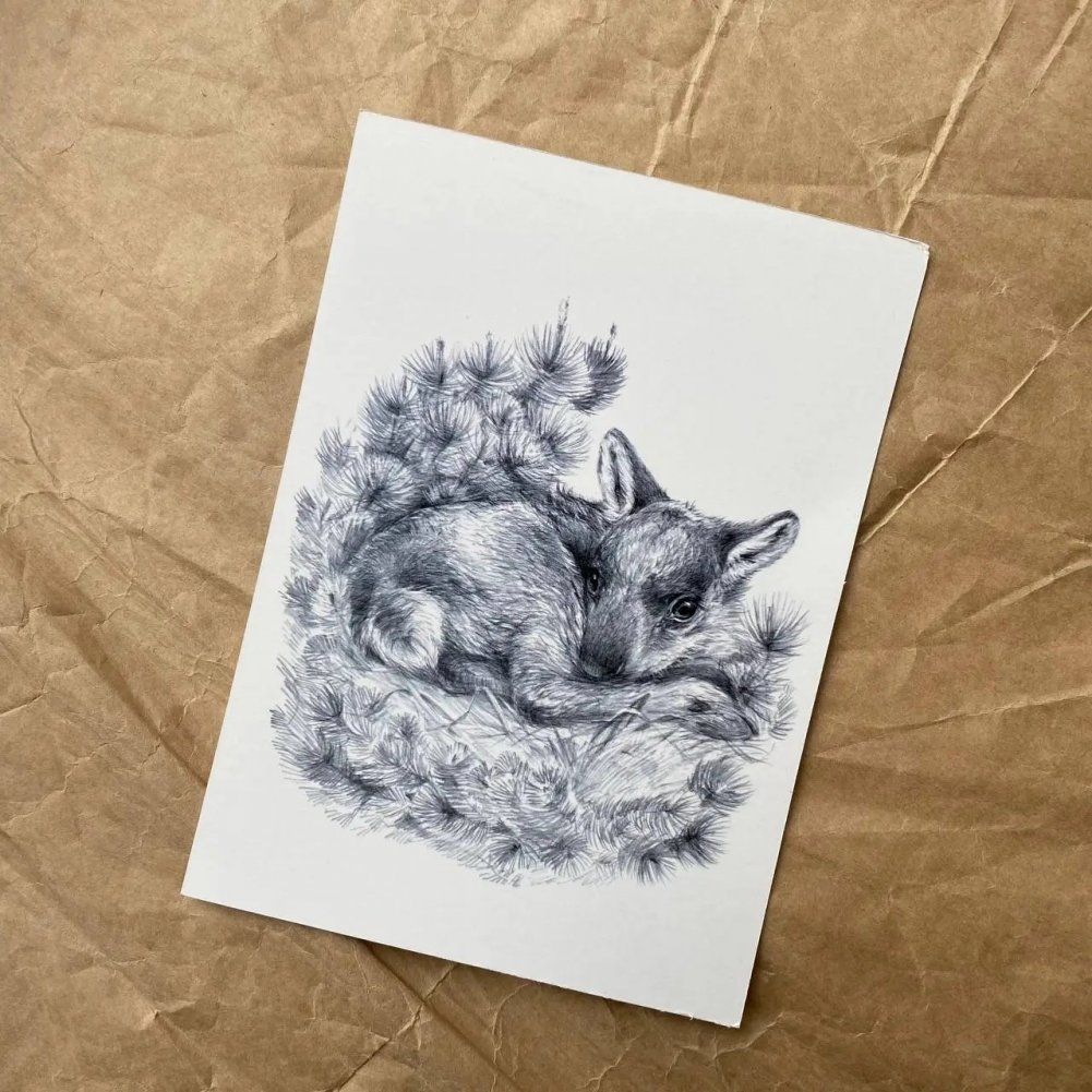 Почтовая открытка с иллюстрацией художницы Натальи Габеевой к книге "Иду по тайге".