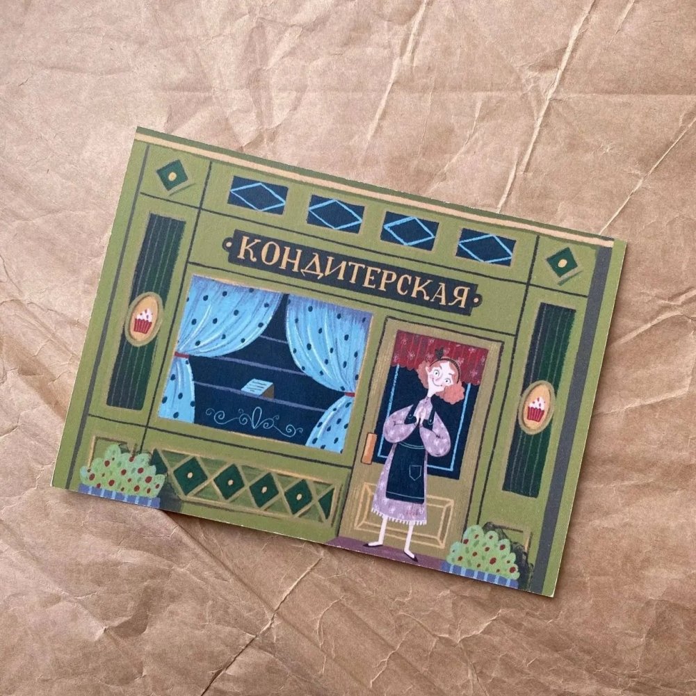 Почтовая открытка с иллюстрацией художницы Екатерины Тиховой к книге "Синьорина Корица".
