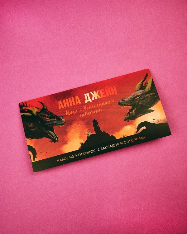 Лучшее дополнение к хорошей книге — это набор с тематическим мерчом по ней! В конверте красочные открытки, закладки и стикерпак. Мерч вдохновлен оформлением и героями цикла книг Анны Джейн «Нежеланная невеста».