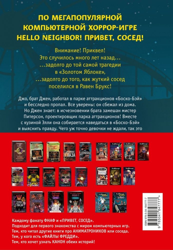 ЛЕГЕНДАРНЫЕ ИСТОРИИ КРАТКО! С ПЛАКАТОМ в комплекте! От создателей книг серий Five Nights at Freddy's и Hello Neighbor. Привет, сосед. Идеально в качестве подарка. Полностью повторяют оригинальные издания! Плотная бумага, яркие цвета, крепкие обложки. Два графических романа, рассказывающие новые истории из двух легендарных Вселенных. Абсолютно феноменальный успех у детей и подростков, про эти книги знают все, просмотры на Ютубе от десятков тысяч до десятков миллионов!
