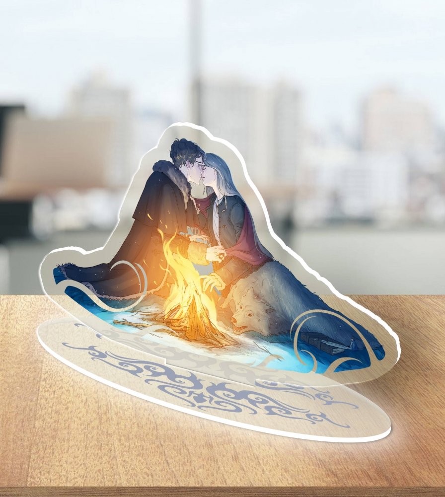 Стенд из акрила посвящен трогательной сцене из романа «Его забрал лес», входящего в цикл «Золотые земли» Ульяны Черкасовой.