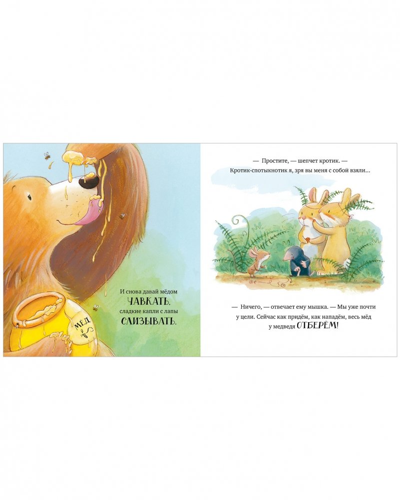 У медведя есть большо-о-ой горшок вкуснейшего меда. И он не намерен ни с кем делиться! Но мышка, кротик и братцы-зайцы о-о-очень голодные. Смогут ли они пробраться через заросли густого леса и заполучить мед так, чтобы грозный медведь их не заметил?