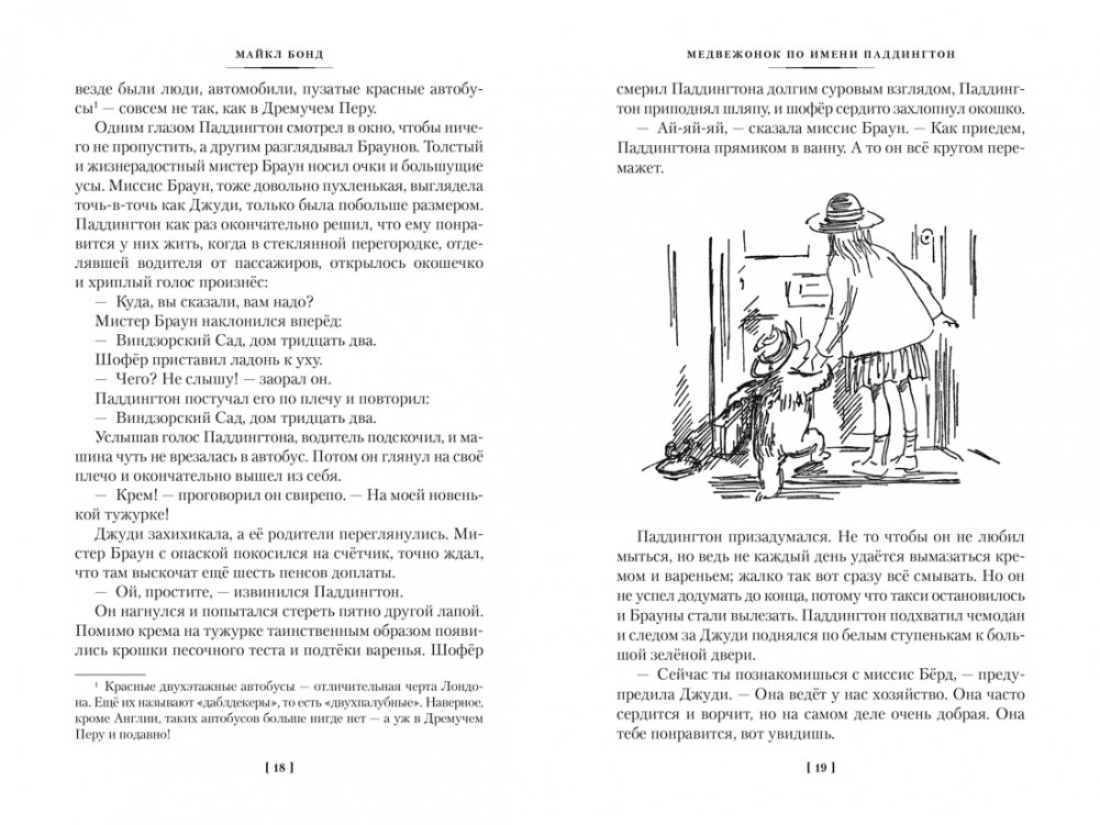 Чтобы попасть в Лондон из Дремучего Перу, нужно долго-долго плыть на корабле, а потом ещё ехать поездом. Именно так и сделал маленький медвежонок в широкополой красной шляпе. И вот в один прекрасный день он очутился на Паддингтонском вокзале. Удача улыбнулась отважному путешественнику: прямо на платформе он познакомился с мистером и миссис Браун, благодаря которым обрёл друзей, собственную комнату, синее пальтишко, а также звучное имя — Паддингтон. С того момента, как в доме Браунов поселился любознательный и очень деятельный медвежонок, там частенько происходят удивительные события. Просто такой уж этот медведь — с ним постоянно что-нибудь приключается! С тех пор как в 1958 году Майкл Бонд написал первые рассказы о медвежонке по имени Паддингтон, минуло уже больше шестидесяти лет. Время шло, но книги об очаровательном владельце синего пальтишка и видавшей виды красной шляпы совсем не утратили популярность и всё ещё продаются миллионными тиражами. Истории о Паддингтоне неоднократно экранизировали, а в 2022 году он даже появился в видеоролике, посвящённом празднованию семидесятилетнего правления королевы Елизаветы II.