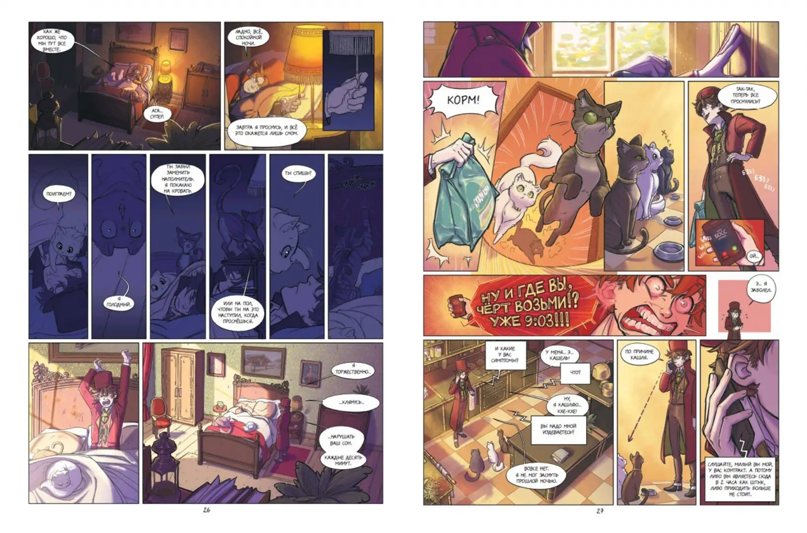 Комедийно-детективный комикс о тайнах прошлого и говорящих котиках! Жан-Эймар плохо знал дедушку Виктора. Настолько плохо, что даже не догадывался о существовании особняка, который достался ему по завещанию. И тем более не мог представить, что Виктор изобрёл ошейники-переводчики для котов. Теперь вместе с пушистыми друзьями Клубком, Милашкой, Каплей и Сливкой ему нужно защитить новый дом от неизвестного злодея и его коварного когтистого партнёра Иу Ды. Сможет ли Жан-Эймар раскрыть секреты дедушки и защитить его наработки?